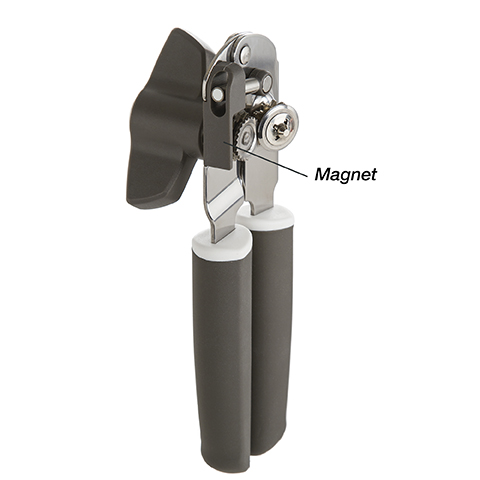 Nuestro abrelatas con imán autoexpulsor te permite quitar y deshacerte de las tapas sin manipular los bordes afilados expuestos. La sólida estructura de acero inoxidable y el pomo sobredimensionado ofrecen la estabilidad perfecta y la palanca de giro.