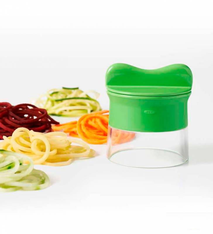 Puedes preparar desde tallarines de zapallo italiano o pepino hasta ensalada de betarraga o papas en segundos y disfrutar de una comida saludable. Con un sujetador que mantiene seguras tus manos mientras giras las verduras, también actúa como una tapa de almacenamiento.