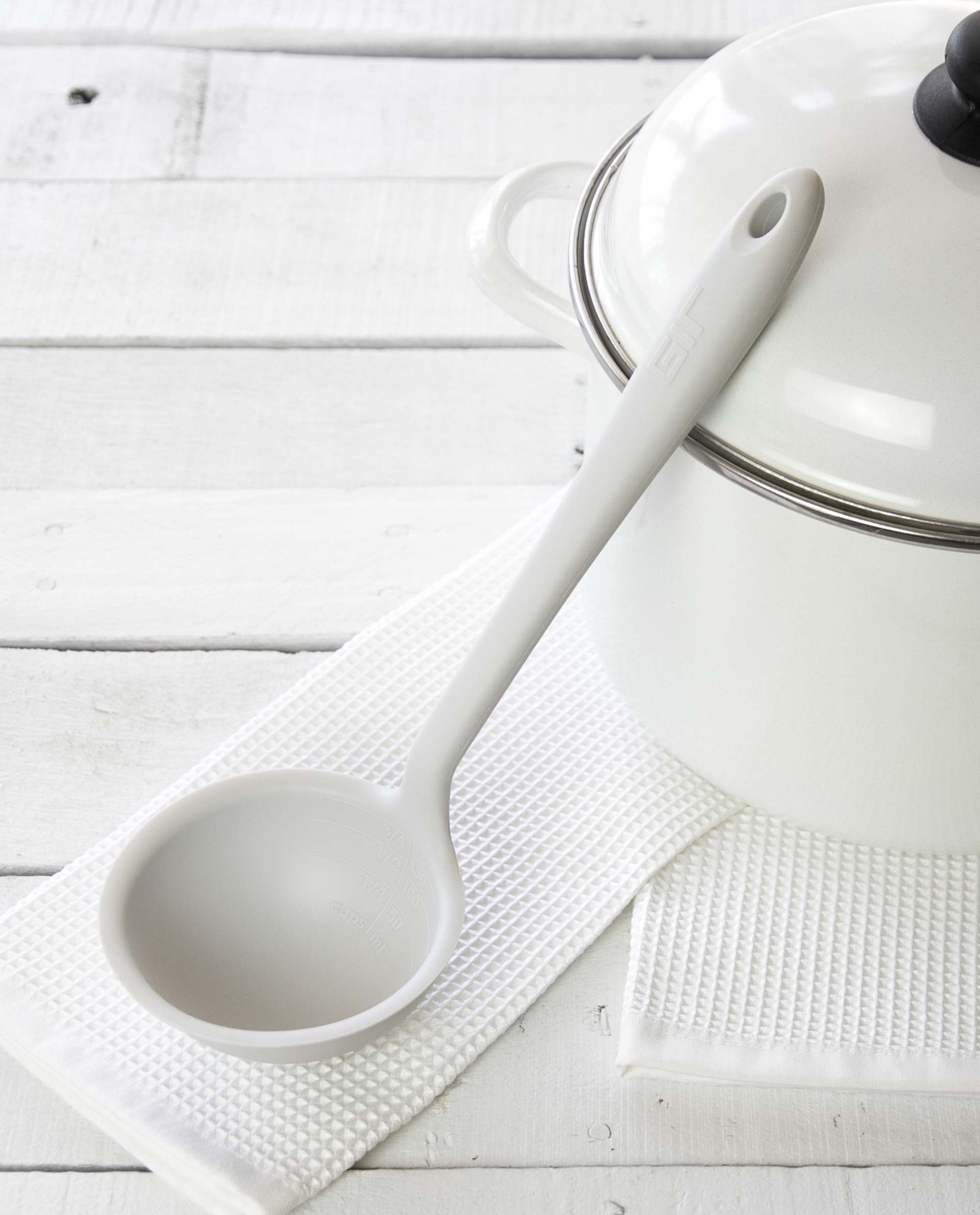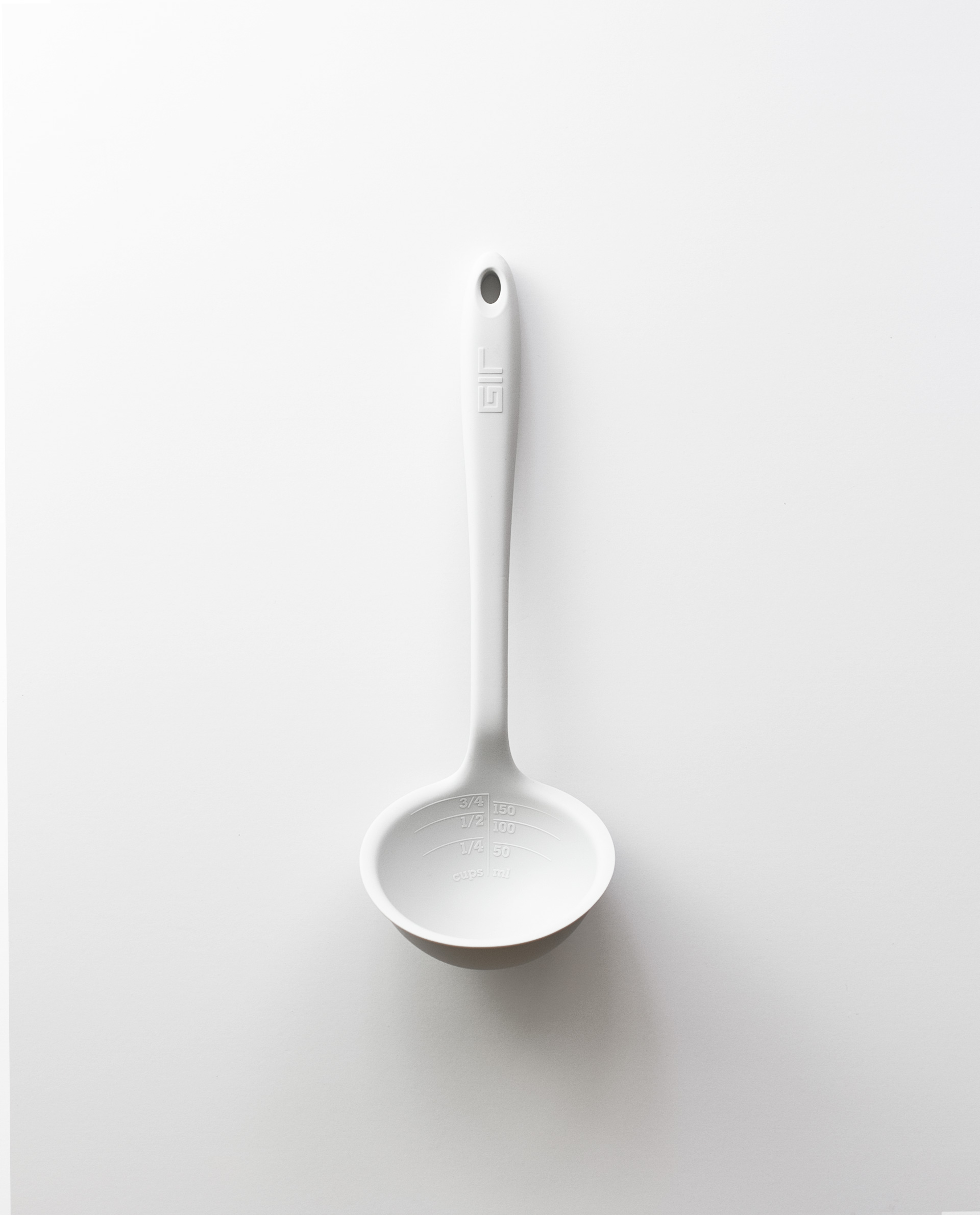 De cuchara profunda con medidas imperiales y métricas en relieve fácil de leer, mango con el ángulo de 45° ideal para un uso ergonómico y cuenco flexible que llega a los rincones más difíciles de alcanzar de cualquier olla. Este cucharon podría cambiar tu manera de ver la cocina.