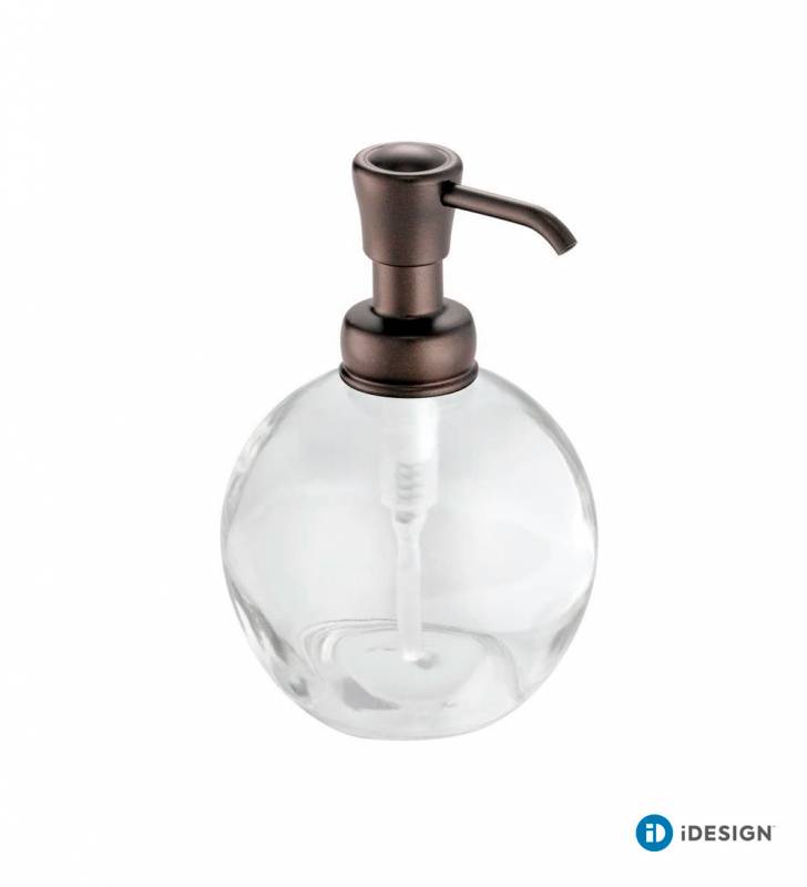 Nuestro dispensador redondo bronce de Interdesign es perfecto para complementar tu baño con un toque clásico. Está hecho de vidrio transparente y tiene una bomba plástica con acabado bronce que no se oxida. Sirve para jabón, crema, alcohol gel e incluso lavalozas.