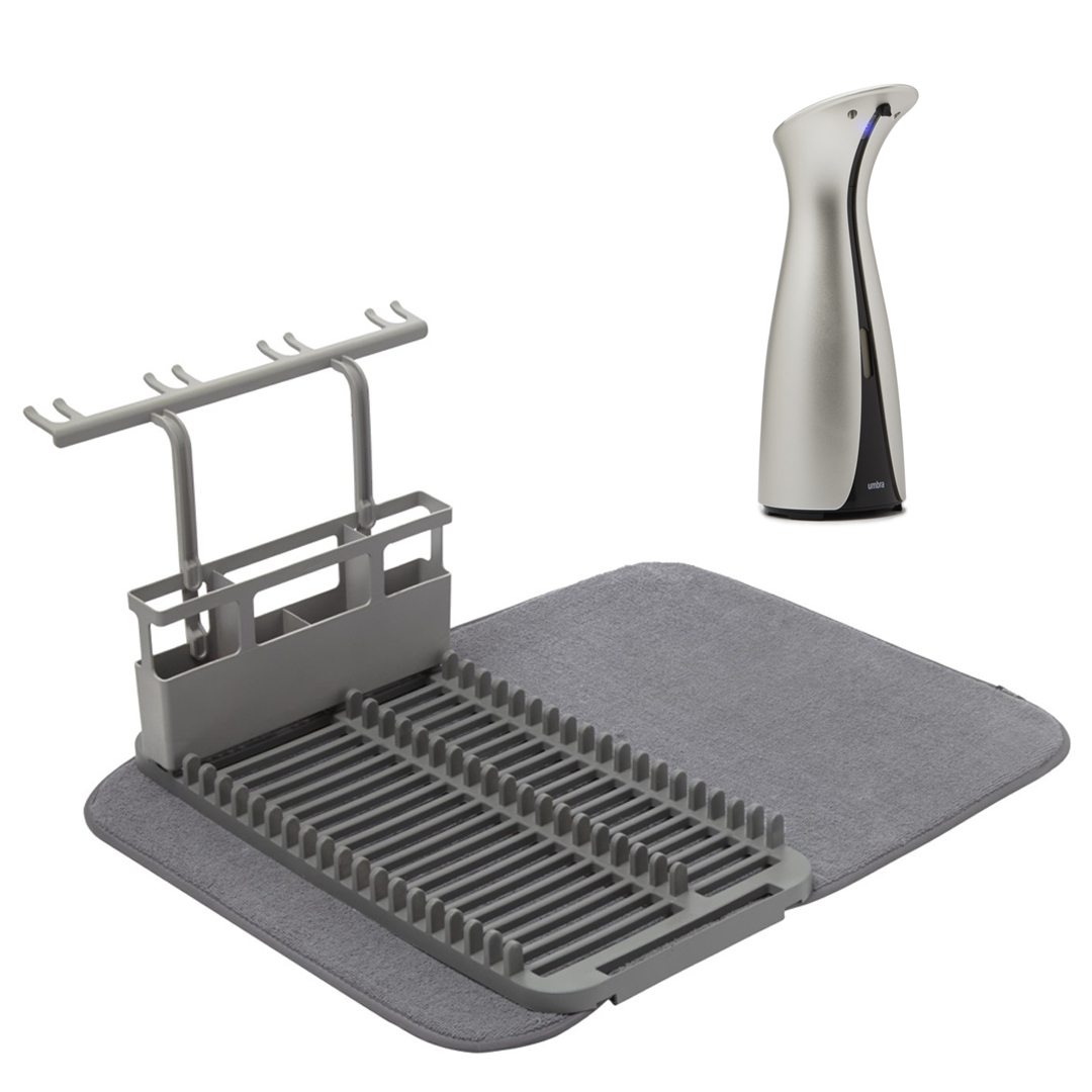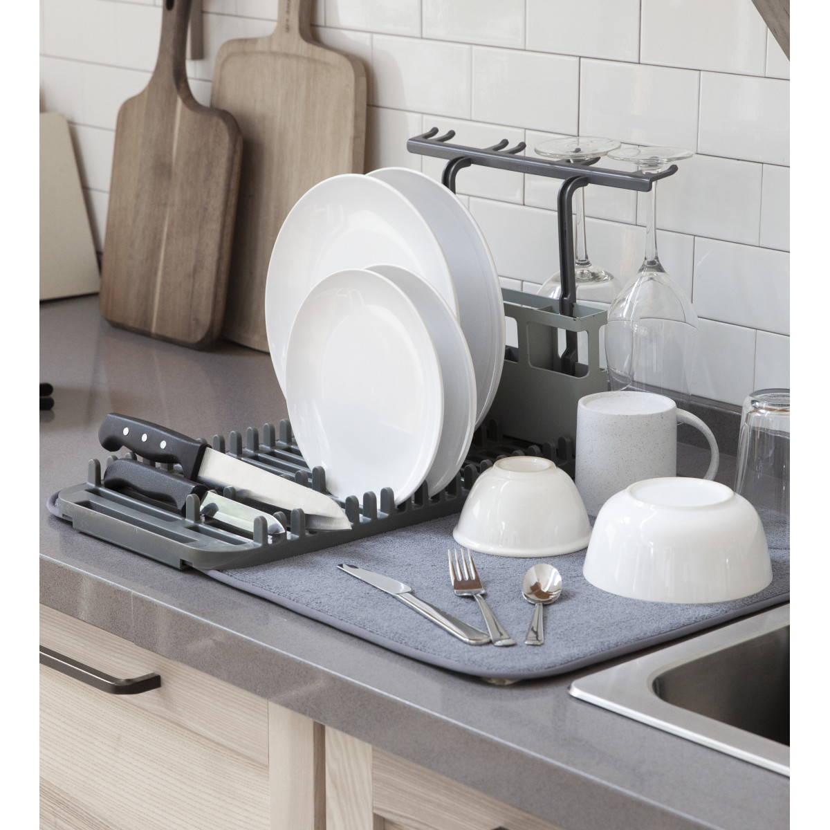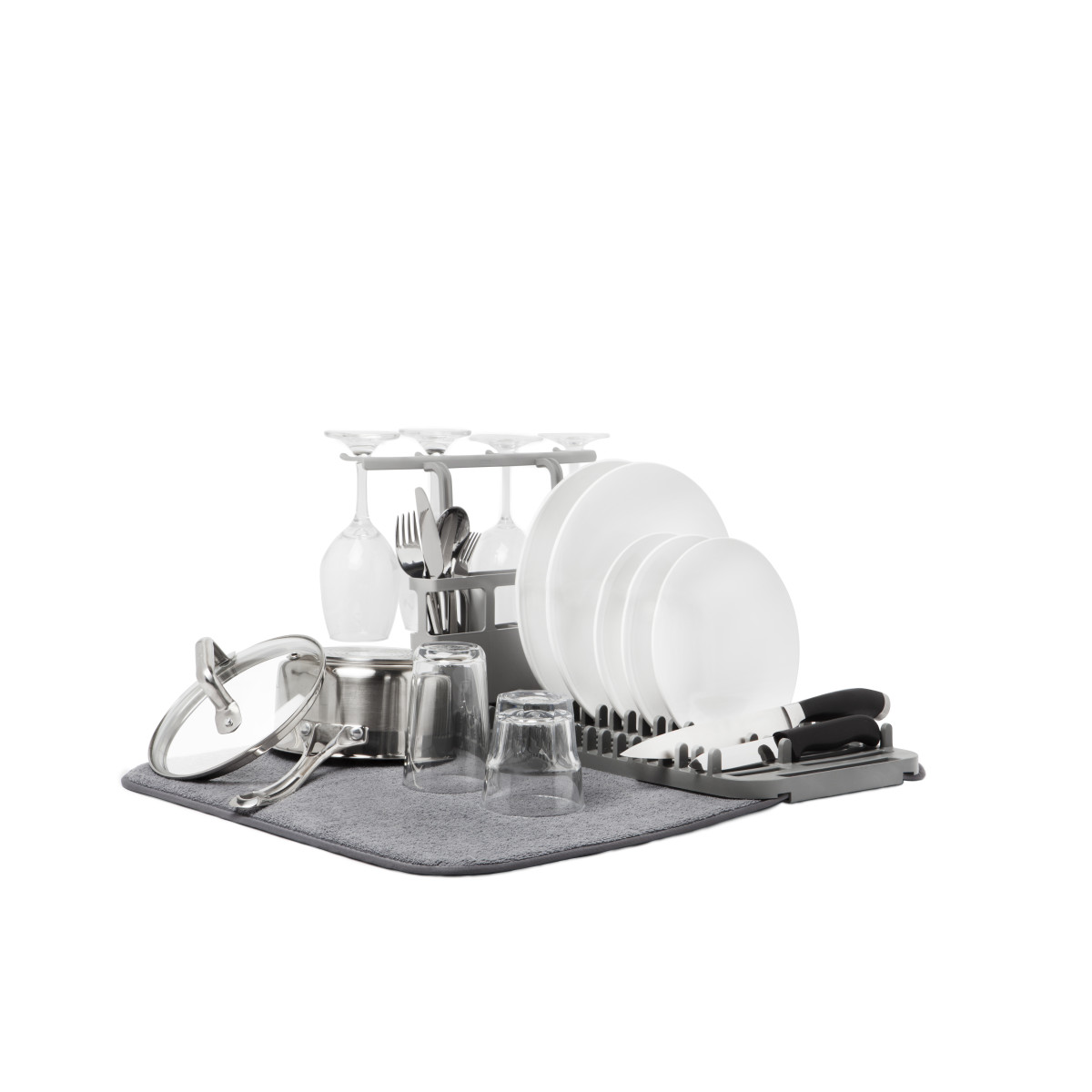 Nuestro Mat secador de platos UDry es una solución innovadora para secar los platos rápida y fácilmente. Tiene capacidad para 21 platos más el espacio del mat donde puedes poner copas, vasos, ollas, etc. Además este modelo cuenta con un soporte para utensilios y un porta copas.