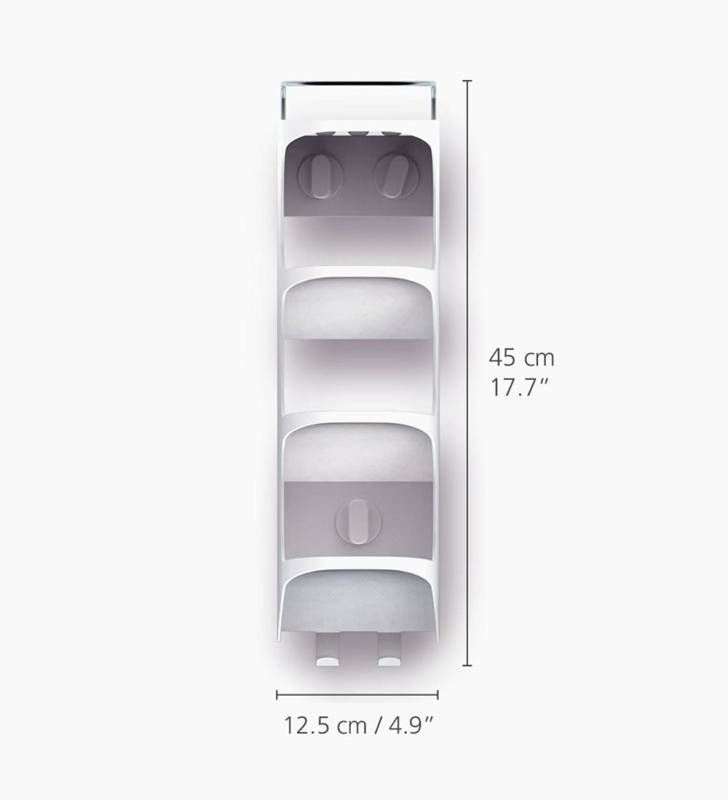 El Organizador Ducha Capsule 4 Niveles Joseph Joseph es perfecto para guardar todos tus esenciales de baño dentro de la ducha usando poco espacio. Su compartimiento superior con barra metálica está diseñado para guardar el jabón en barra o botellas pequeñas. Además, drena fácilmente gracias a su superficie en ángulo. Los 3 compartimientos inferiores en ángulo son perfectos para guardar botellas más grandes de shampoo, bálsamo y gel de ducha sin que estas se caigan. Por último incluye 2 ganchos para colgar tu esponja y rasuradora. Para instalarlo no necesitas herramientas, ya que se adhiere firmemente a la pared de tu ducha gracias a sus ventosas extra fuertes (apto para cerámicas lisas y vidrio).