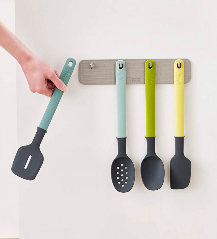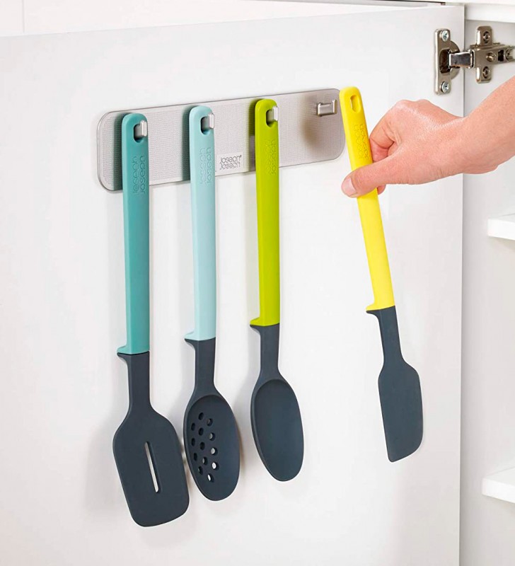 Este ingenioso juego de 4 utensilios aprovecha al máximo el espacio dentro de tu armario, guardándolo en la parte trasera de la puerta. Es ideal para montar en espacios estrechos. Además el diseño Elevate™ cuentan con descansos integrados para evitar que las cabezas toquen la superficie cuando se apoyan.
